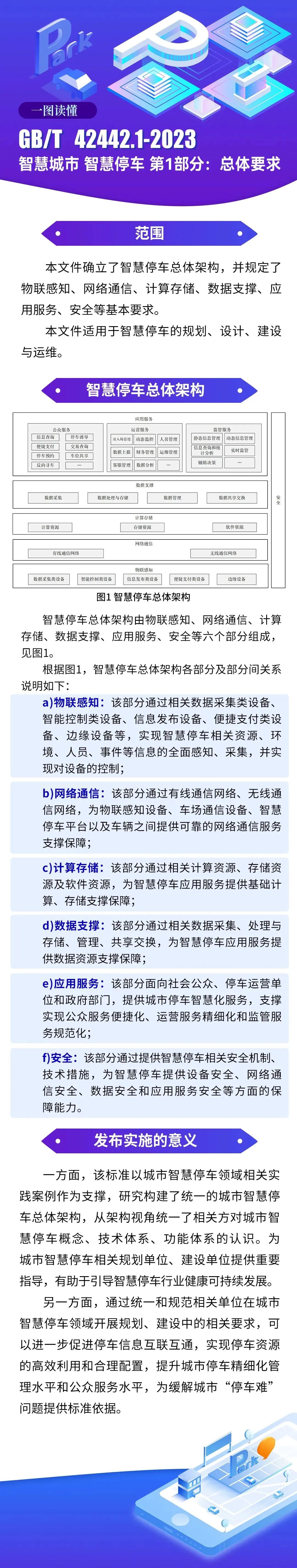 近日,《智慧城市 智慧停車 第1部分:總體要求》(GB/T 42442.1-2023)(以下簡稱《智慧停車總體要求》)經市場監管總局(標准委)批准發布,將於2023年10月1日起正式實施。該標准由全國信息技術標准化技術委員會歸口、全國信標委智慧城市標准工作組開展研制。