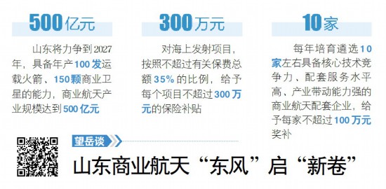 《若干措施》把山東省商業航天產業發展納入國家總體布局統籌謀劃,圍繞火箭衛星研發制造、數據開發應用,以及新材料、零部件、元器件、集成電路等航天關聯配套領域發展,在技術創新、人才招引、企業培育、產業集聚、生態優化等方面給予支持,共包括6個方面18條措施。
