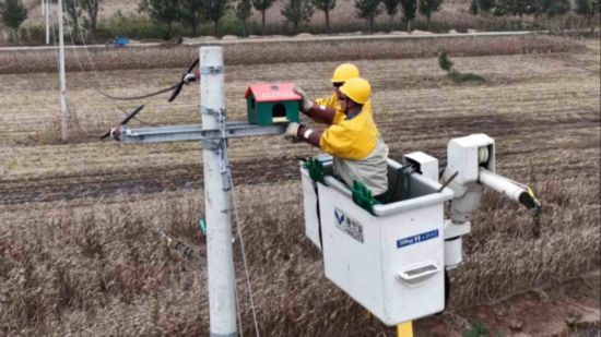 作為黃河入魯第一縣,東明縣擁有廣闊的黃河灘區,是每年候鳥遷徙的重要停歇地。每年秋冬之交,數以萬計的候鳥途經這裡,針對鳥類在鐵塔筑巢容易引發安全風險的難題,今年,國網東明縣供電公司通過自主搭建絕緣材料人工鳥巢,並組織人員科學安裝在鐵塔防觸電區域,最大限度減少鳥類不慎觸電風險,成功將“鳥線矛盾”轉化為“鳥線和諧”,為即將到來的鳥類棲息提供了新的家園。