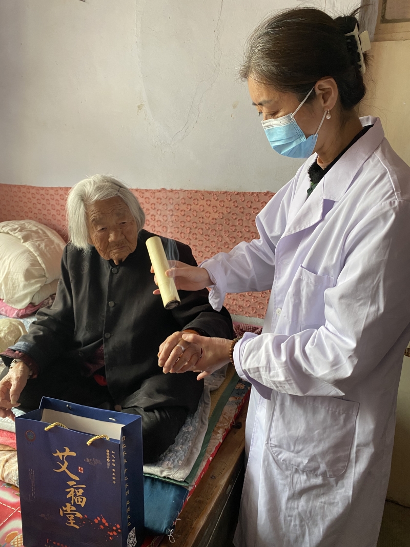 對於行動不便、難以親臨現場體驗的百歲老人,區發展軟環境保障局聯合艾福堂公司開展“送‘艾’上門”服務。經過前期細致摸排,在確認長者身體狀況適宜的前提下,艾灸師們攜帶專業設備走進長者家中,為老人們提供了量身定制的艾灸體驗。