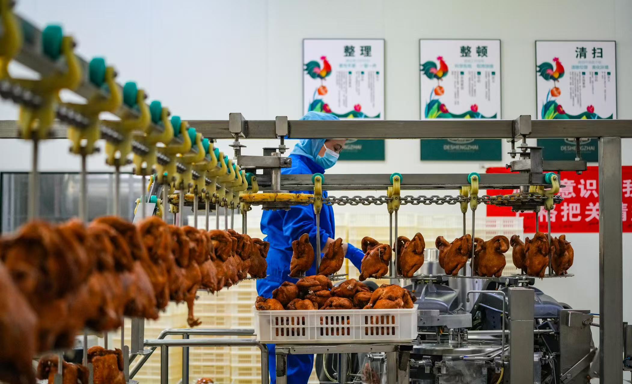 年關將至,年貨需求攀升,樂陵食品產業企業迎來生產旺季。眼下,位於山東省樂陵市經濟開發區的金鵬德盛齋扒雞有限公司正開足馬力趕訂單,全力保障市場供應,呈現出產銷兩旺的火熱景象。目前,企業每天可銷售扒雞2萬隻,魚罐頭3萬瓶,銷售收入同比增長12%,產銷勢頭強勁。