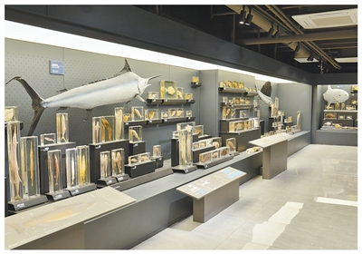 中國海洋大學海洋生物博物館內展出的標本。 |
