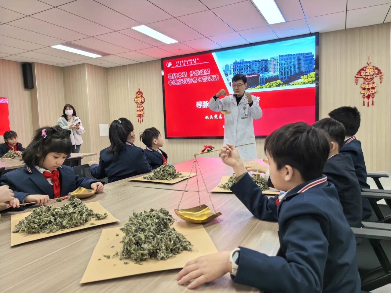 在科普課堂上,孩子們認真聆聽中醫藥知識,隨后還親手體驗了用傳統戥子稱量草藥的過程,在實踐中感受中醫藥的嚴謹與魅力。