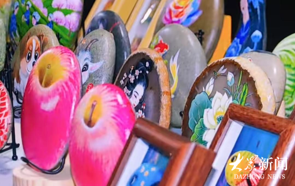 一旁,日照市嵐山區區級非物質文化遺產“安東衛石頭畫”代表性傳承人吳智玲的攤位前也圍滿了好奇的年輕人。“這個小馬背上頂著個紅色葫蘆,寓意是‘馬上得福祿’,必須得整一個。”“00后”游客張鑫挑選了一幅馬年石頭畫,小心翼翼地把它裝進背包,“爸媽買年貨追求量大、實惠、體面,我隻考慮情緒價值。”