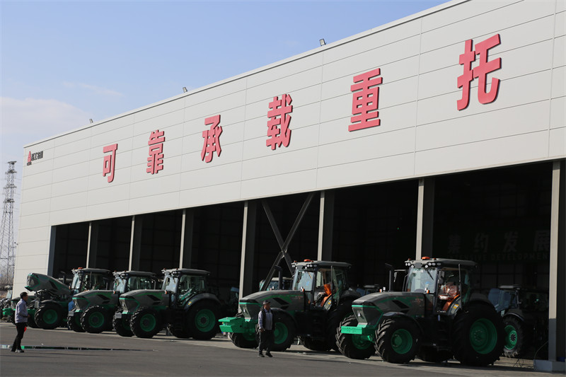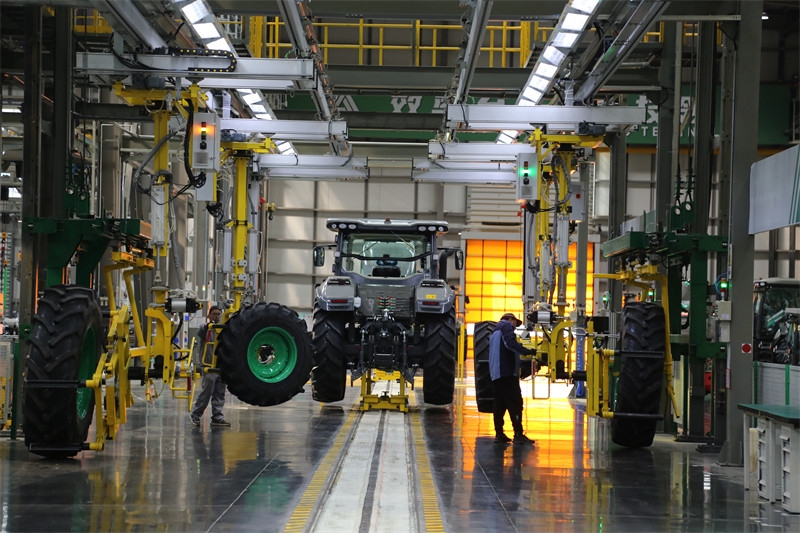 2026年2月24日,在位於山東省臨沂市蘭山區的臨工農業裝備有限公司車間內,工人在進行大型農用拖拉機組裝作業。