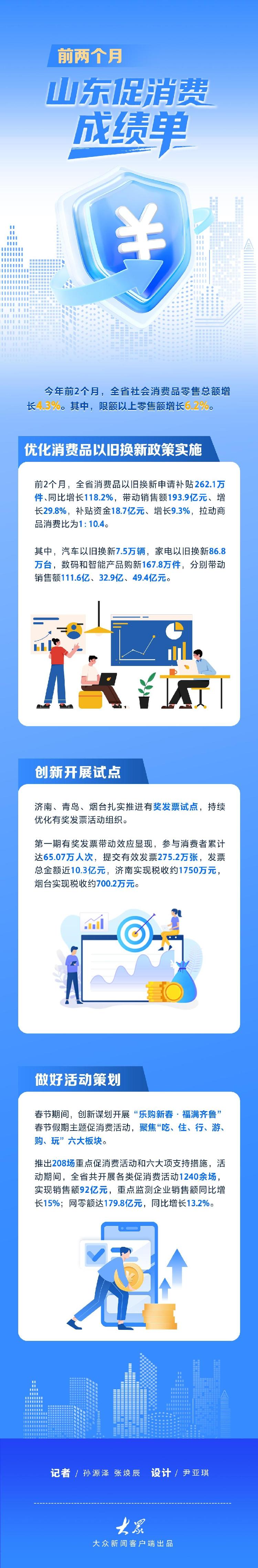 今年,山東消費市場開局平穩。1-2月,全省社會消費品零售總額增長4.3%。其中,限額以上零售額增長6.2%。