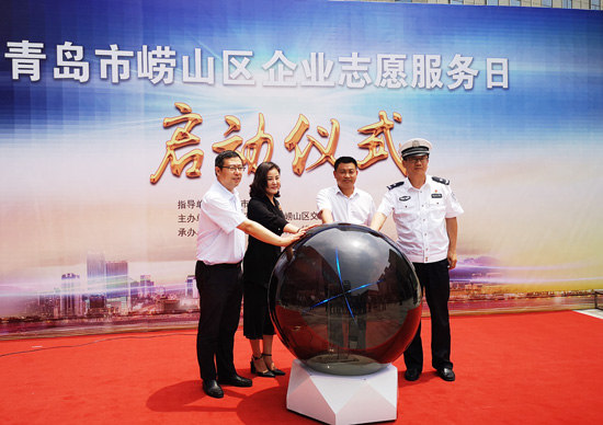 人民网青岛6月19日电(孙林)6月19日,山东省青岛市崂山区“企业志愿服务日”启动仪式在青岛崂山交银村镇银行举行。这是青岛市设立的首个“企业志愿服务日”,倡导企业以公益的形式庆祝节日,引领新时代文明实践志愿服务新风尚。