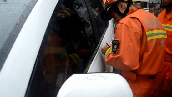 救援站指挥员立即下达命令:两名战斗员进行警戒,两名战斗员进行救援,两名战斗员进行辅助。一开始消防员想把窗玻璃砸碎,为了防止碎玻璃伤到孩子,他们在上边粘了很多胶带,但是因为孩子一直不肯配合去后排。见这个方法行不通,消防员立即转变了救援思路。消防员和家长一起,诱导孩子去按车钥匙上的开锁键,试了几次最终把车门打开了,孩子成功获救,身体并无大碍。(山东频道)