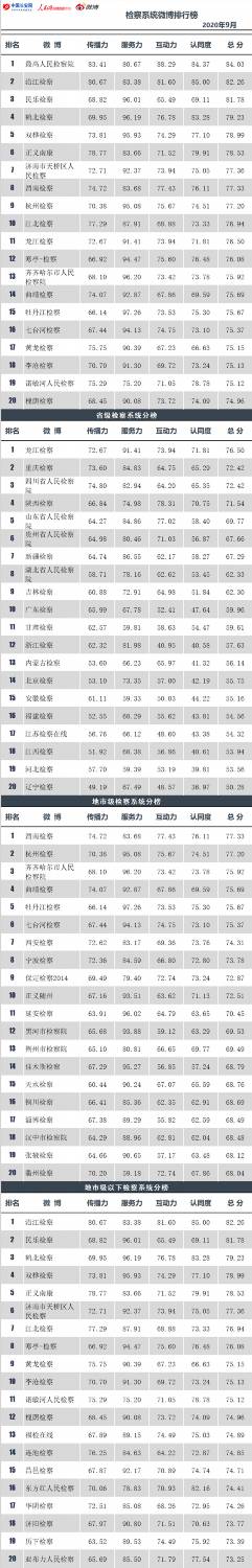 中央政法委官方新闻网站中国长安网联合人民网舆情数据中心发布政法系统微博排行榜9月榜。榜单涵盖全国所有通过微博认证的政法委、法院、检察院、公安和司法行政系统等机构官方微博,评价体系包括四个维度:传播力、服务力、互动力和认同度。