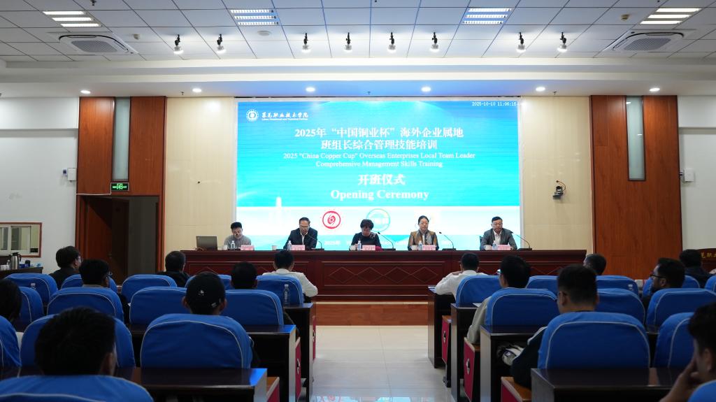 10月10日上午,2025年“中国铜业杯”海外企业属地班组长综合管理技能培训开班仪式在莱芜职业技术学院举行。有色金属工业人才中心主任助理、教育培训处处长赵丽霞,中冶集团铜锌有限公司人力资源部部长欧阳莹,莱芜职业技术学院党委副书记、院长徐运国出席仪式。来自科伊苏尔丹矿业有限公司、中冶集团资源开发有限公司(巴基斯坦)的领队和培训学员,莱芜职业技术学院相关系部负责人与教师代表参会。仪式由莱芜职业技术学院党委委员、副院长任清华主持。