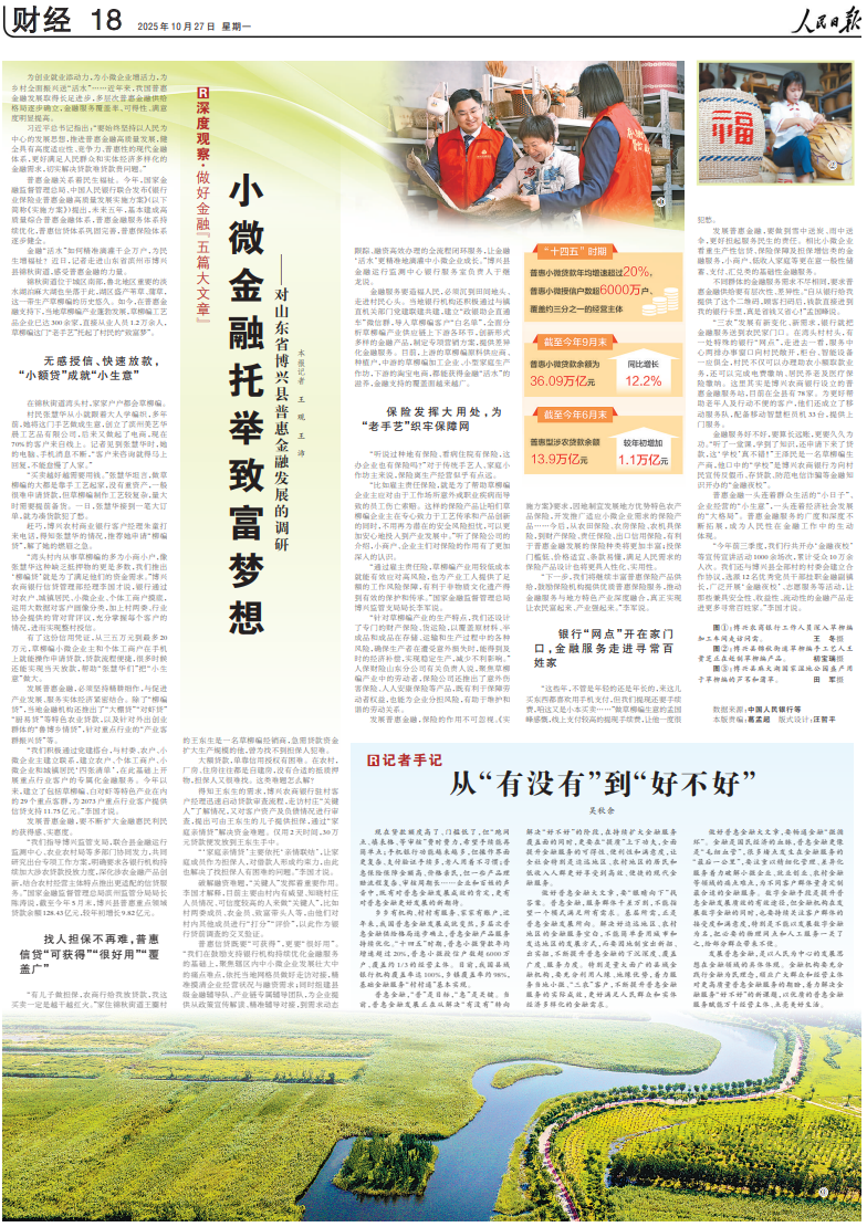 普惠金融一头连着群众生活的“小日子”、企业经营的“小生意”,一头连着经济社会发展的“大格局”。普惠金融服务的广度和深度不断拓展,成为人民性在金融工作中的生动体现。