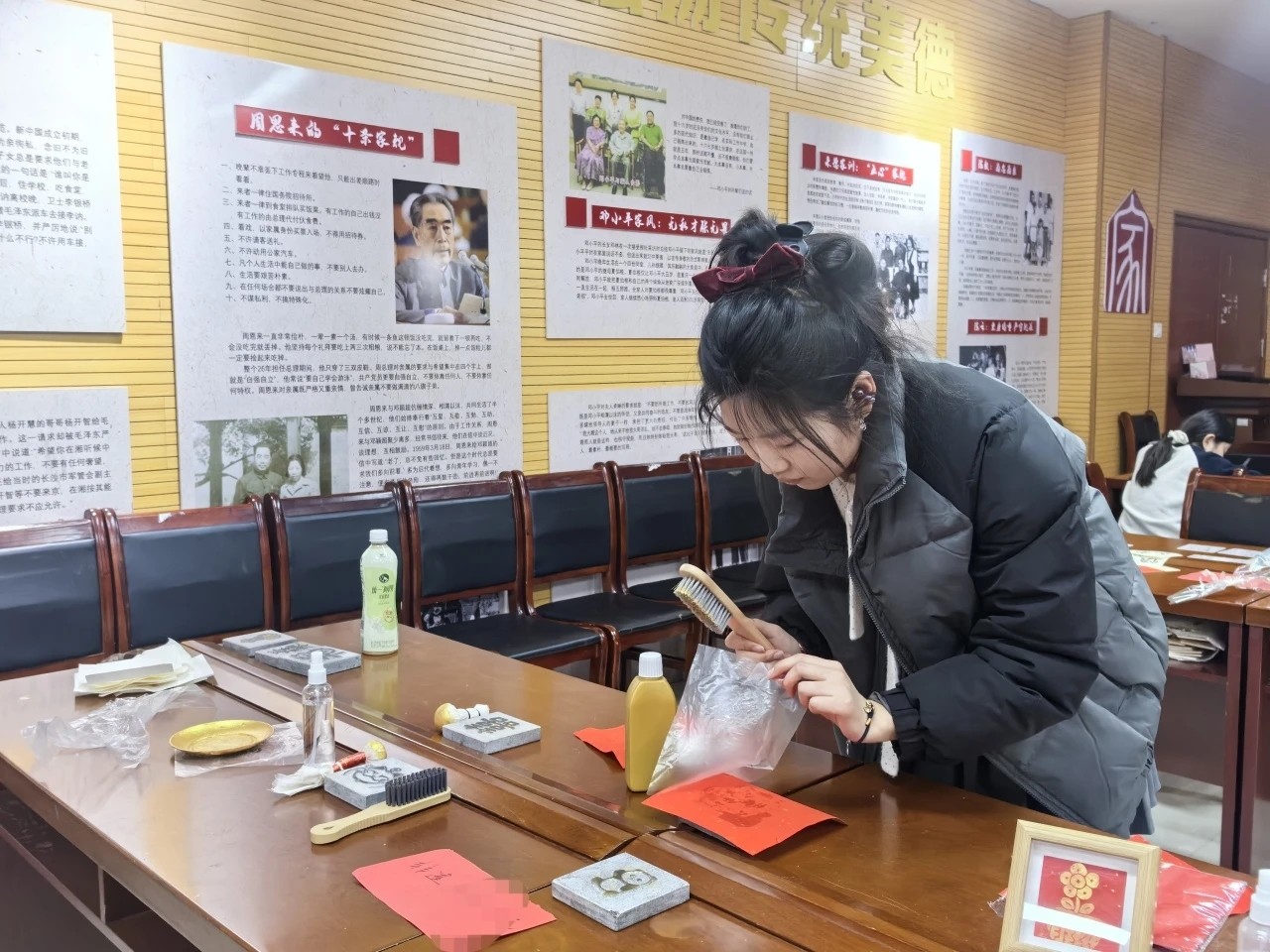 春节最具人气的当属“博物馆里过大年”系列马年主题活动。马年粮食画创作区,游客以五谷为“颜料”,勾勒出一匹匹灵动骏马,寄托五谷丰登、家业兴旺的美好愿景;非遗拓印体验区前,游客在工作人员指导下轻敲慢拓,感受古老技艺的独特魅力;中医香囊制作活动同样人气高涨,大家精心缝制香囊,将平安健康的新春祝福一针一线融入其中;现场最具趣味的“打卡拍马屁”互动点位前更是人头攒动,别致的骏马主题装置吸引游客纷纷合影,欢声笑语间,浓浓的文化年味扑面而来。